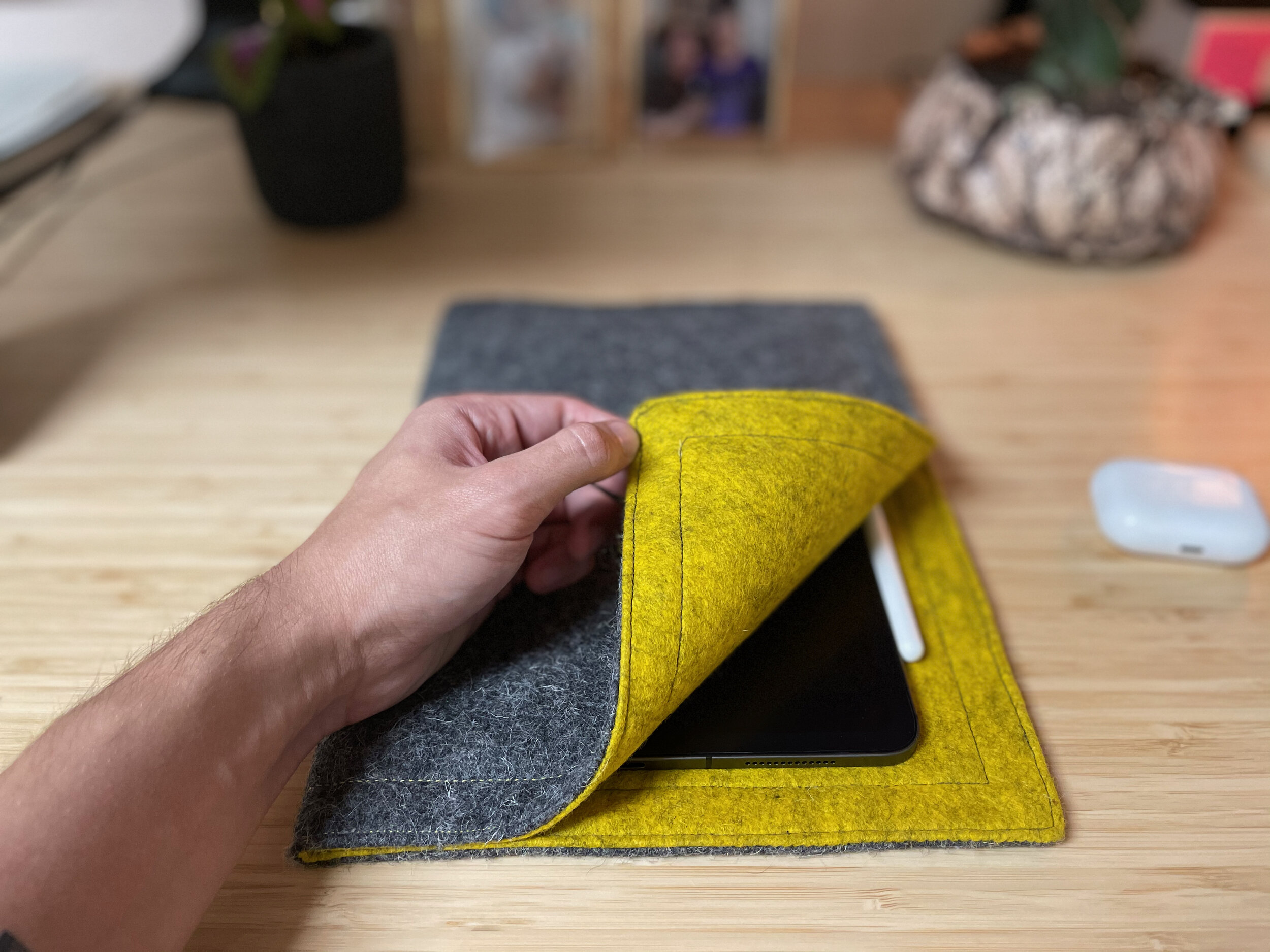 A DIY magnetic laptop sleeve made from wool felt and neodymium magnets.